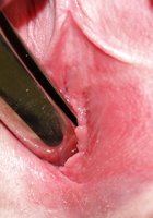 Похотливая медсестра захотела показать свое широко раскрытое влагалище во врачебном кабинете. Она раздвинула ноги и начала вставлять в себя гинекологическое зеркало. Брюнетка извлекла медицинский инструмент, чтобы растянуть половые губы пальцами и показать влагалище крупным планом. Медсестра повернулась попкой, чтобы показать также и свои ягодицы.