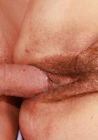 После того как полностью голая старушка с темно-рыжими волосами и натуральными титьками сделала минет молодому любовнику, она легла на постель и впустила эрегированный пенис в очень волосатое влагалище, которое она не брила вот уже несколько лет. После вагинального секса 57 летняя бабушка разрешила накончать ей в мохнатку и показала, как из неё вытекает сперма.