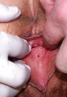 Когда обнаженная брюнетка с короткими волосами встала на четвереньки на кушетке перед опытным гинекологом в белом халате, он начал осматривать волосатую письку и натуральные сиськи, после чего пригласил на гинекологическое кресло. Как только зрелая барышня развела перед врачом в очках ножки, он просунул в ее дырку медицинскую трубку и взял мазок.